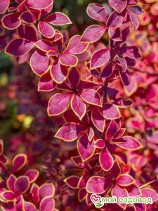Барбарис тунберга Ред Чиф (Berberis thunbergii Red Chief) — раскидистый кустарник с изогнутыми ветвями до 1,5м в высоту и ширину. Листья узкие, кожистые, блестящие, насыщенного тёмно-пурпурного цвета. Осенняя окраска листьев – буро-красная. Цветки многочисленные, светло-желтые, с приятным ароматом собраны в кистевидные соцветия по 2-5 шт, появляются на кусте в мае месяце. Блестящие овальные плоды красного цвета, усыпают куст ежегодно и созревают в сентябре. Предпочитает солнечное местоположение. К почвам не требователен, может произрастать на почвах любой кислотности. Предпочитает свежие, дренированные субстраты. Не выносит переувлажнения. Устойчив к засухе.