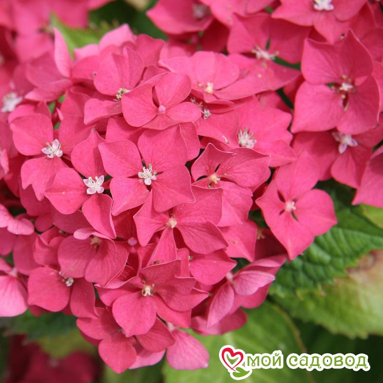 Гортензия крупнолистная Мини Хорнли – небольшой куст, которые отлично смотрится в горшках, высота взрослого куста до 70 см., диаметр шаровидных соцветий 15 см. Выбирайте не ветреное место для гортензии, в зимний период, лучше перенести кустарник в более теплое помещение. Цвет лепестков цветоноса зависит от почвы, цвет может меняться от нежно-розового до насыщенного красно-розового. Рекомендации к уходу: Гортензия цветет на прошлогодних побегах, поэтому обрезка не рекомендуется; под зиму срезают соцветия, весной вырезают только погибшие или очень старые ветви.