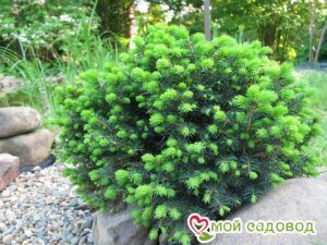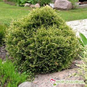 Кипарисовик горохоплодный Беби Блю Эта культура родом из Японии, где встречается на влажных горах. Декоративный кустарник – результат переопыления сорта Болевард. В отличие от материнского растения он более морозоустойчивый и надёжный. Ботаническое описание Как и на фото каталога кипарисовик горохоплодный Беби Блю – карликовый кустарник с густой, компактной кроной конусовидной формы. Побеги тоже густые и слегка приподнятые кверху. Диаметр взрослого экземпляра составляет 1 м, а высота варьирует в пределах 1,5 – 2 м. В молодом возрасте хвойник растёт медленно. В среднем ежегодный прирост в диаметре равен 5 см, а в высоту – 10 см. Кора у кипарисовика горохоплодного Беби Блю серо-коричневой окраски. Хвоя мягкая, густая, немного кудрявая. С лицевой стороны она голубовато-зелёного оттенка, а с тыльной – серебристо-голубая. В зимний период хвоя становится бледнее. Весной на ветвях образуются плоды – шишки шаровидной формы, диаметром около 1 см. Поначалу они зелёные, но со временем приобретают коричневый цвет. Состоят шишки из 6 колючих чешуек. Применение Идеальный вариант применения кипарисовика горохоплодного Беби Блю – выращивание на небольших приусадебных территориях. Он эффектно смотрится в саду, выполненном в японском стиле, в гравийном саду, на альпийских горках и в рокариях. Многолетник хорошо выглядит в горизонтальных композициях, в роли сольного растения. Например, на фоне газона или в бордюрных посадках. Некоторые дачники выращивают его в ёмкости. Как и все хвойные культуры кипарисовик горохоплодный Беби Блю вырабатывает и выделяет в атмосферу фитонциды. Эти вещества – натуральные антисептики, которые хорошо очищают воздух. Агротехника Сорт Беби Блю любит защищённые от холодных сквозняков и хорошо освещённые участки. Он активно развивается на влажной, воздухопроницаемой и насыщенной питательными компонентами почве. Желательно чтобы она была кислой (оптимальные значения pH – 4,5 – 5,5единиц), и не содержала извести. Комфортнее саженцам на суглинках и чернозёмах. К посадке рассады рекомендуется приступать весной, когда грунт хорошо прогреется. А вот подготовительными работами лучше заняться с осени. Перед высадкой кипарисовика лунку поливают водой. Земляной ком растения увлажняют раствором Корневина (на 5 л воды 1 пачка). Далее саженец погружают в центр углубления и засыпают почвосмесью, состоящей из плодородной земли и 300 г Нитроаммофоски. Так как после высадки земля даст усадку, рассаду размещают так, чтобы корневая шейка располагалась на 10 см выше поверхности почвы. В конце растение обильно поливают, подвязывают к опоре, а приствольную зону мульчируют. В дальнейшем кипарисовик горохоплодный Беби Блю тоже нуждается в систематическом орошении. Процедуру выполняют 1 раз в неделю. Расход воды на один экземпляр – не менее 1 ведра. В жаркую и засушливую пору частоту полива нужно увеличить. В мае или начале июля на молодом деревце срезают боковые ростки текущего или прошлого года. Верхушечную часть размером до 10 см сохраняют на черенок. Далее посадочный материал помещают в торфяно-песчаную почву и накрывают целлофаном, создав тепличный эффект. Во время укоренения нужно контролировать влажность воздуха. Оптимальные показатели – 90%. Через 1,5 – 2 месяца у хвойника сформируется корневая система и его можно перенести на по