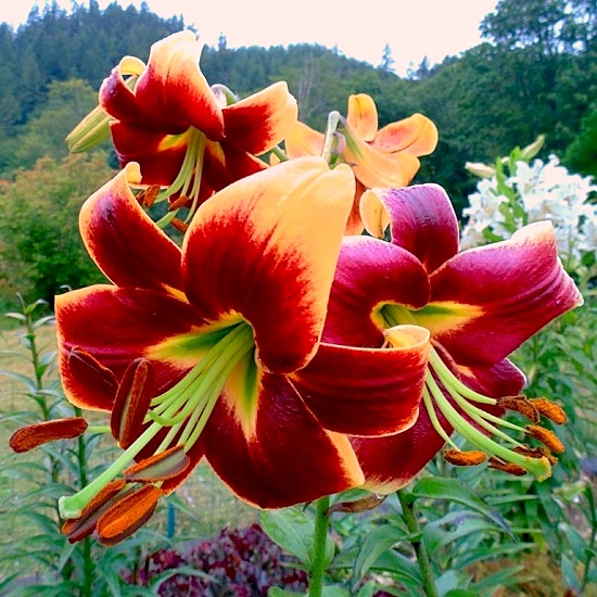 Луковицы Лилии ОТ-гибрид Ред Морнинг (Lilium OT-hybrid Red Morning) как нельзя лучше подойдут саду с большим количеством зелени. Многолетний цветок обладает уникальной особенностью — его оттенок зависит от освещенности. Крупные, около 20 см в диаметре цветки со сложной окраской меняют цвет в течение дня.  Высота растения: до 200 см. Зимостойкость: -40°С. Время цветения: июль — август.