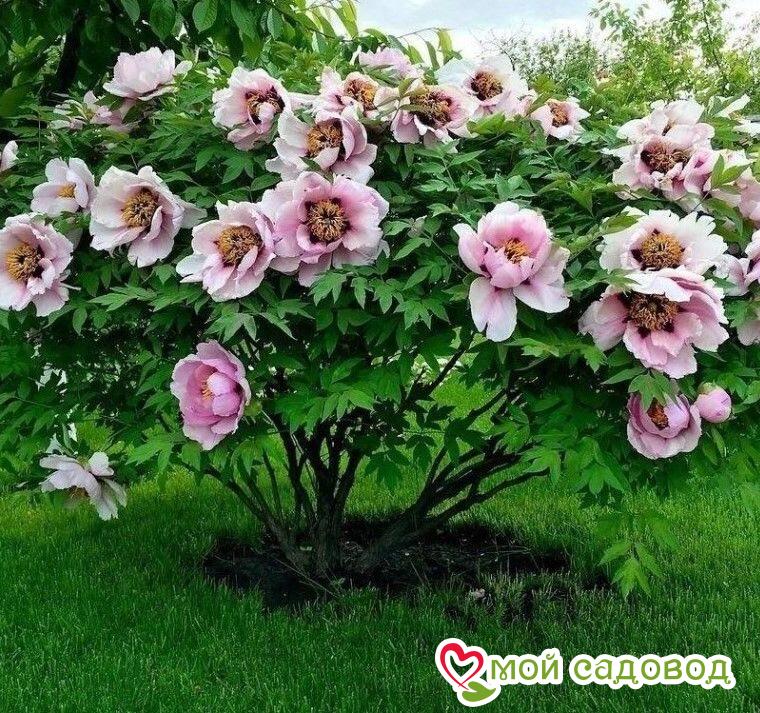 Пион древовидный — морозоустойчивый кустарник, достигающий высоты до 2 м, с крупными ярко-зелеными листьями. На одном кусте может быть от 30 до 70 цветков. Диаметр каждого от 20 до 25 см. Продолжительность цветения 12—14 дней. Растение декоративно и после цветения из-за необычной формы листьев. Пион неприхотлив, устойчив к болезням. На одном месте без пересадки может расти более 20 лет.