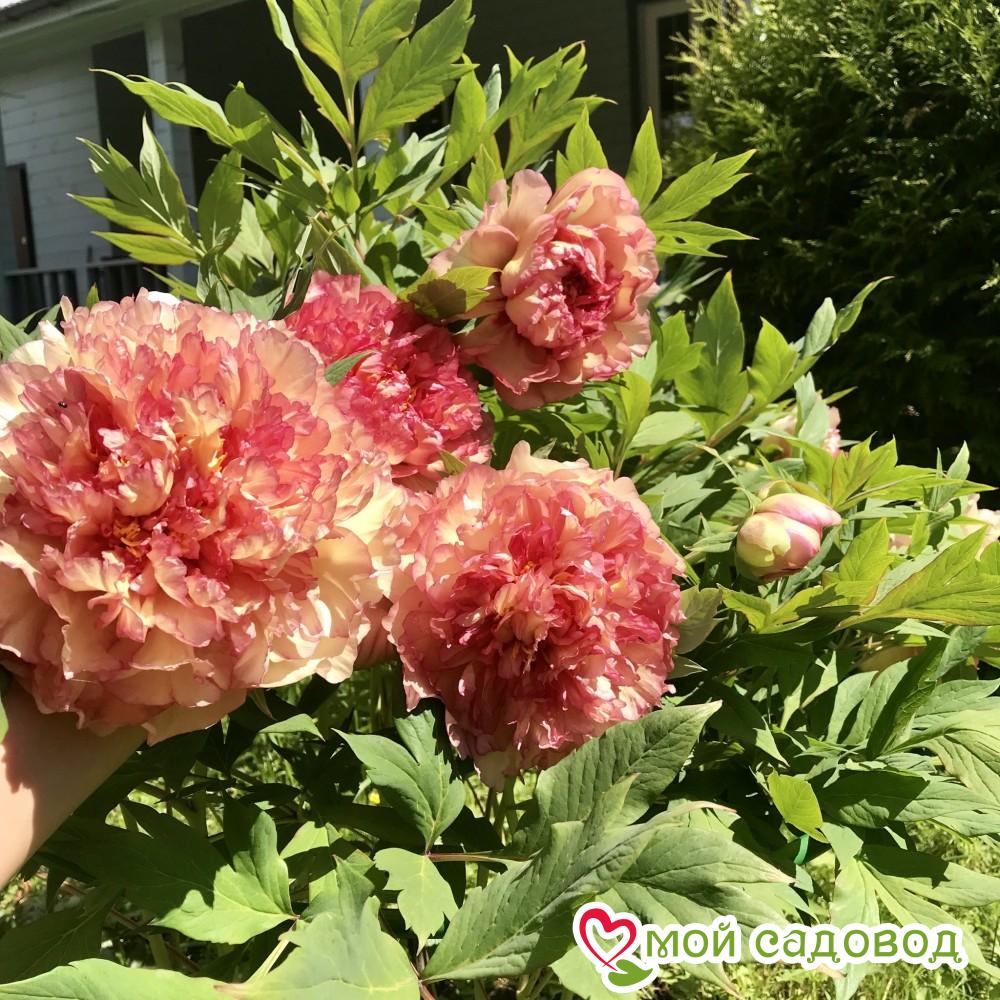 Пион древовидный — морозоустойчивый кустарник, достигающий высоты до 2 м, с крупными ярко-зелеными листьями. На одном кусте может быть от 30 до 70 цветков. Диаметр каждого от 20 до 25 см. Продолжительность цветения 12—14 дней. Растение декоративно и после цветения из-за необычной формы листьев. Пион неприхотлив, устойчив к болезням. На одном месте без пересадки может расти более 20 лет.