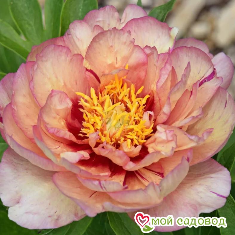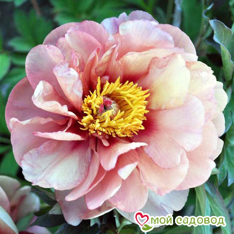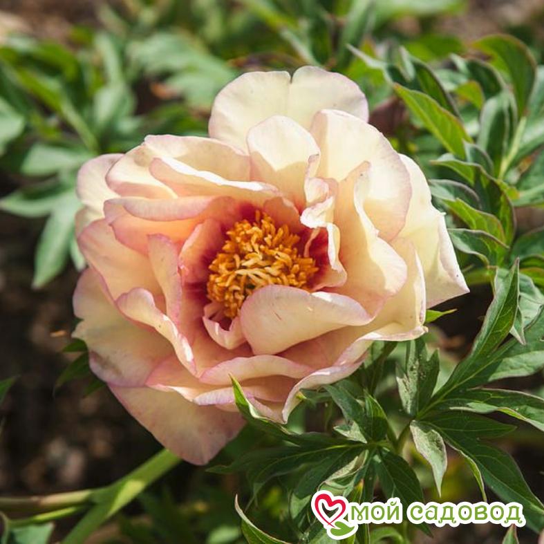 Полумахровый. Цветок диаметром 15-20 см, кремово-жёлтый до персикового с каштановыми пятнами у основания центральных лепестков. На стебле 2-3 бутона, которые очень медленно раскрываются. Листва красивая. Цветение длительное. .
