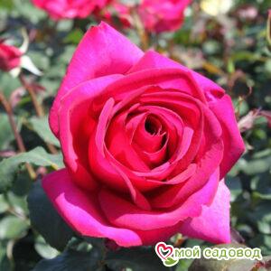 Роза Микадо Этот сорт выведен в 1955 году селекционерами компании Кордес. Попав на рынок, роза Микадо сразу же завоевала популярность. Востребованность растения обусловлена его отменными характеристиками – высокими декоративными качествами, устойчивостью к неблагоприятным условиям и т. д. Ботаническое описание Роза Микадо – двухлетняя культура. Её изящные лепестки окрашены в насыщенно-красный цвет. Бутоны среднего размера, классической формы, диаметром в пределах 6 – 7 см. Обычно они образуются по одному на побеге. Цветение непрерывное. Начинается оно в июле-месяце и длится на протяжении всего сезона. Иногда сроки меняются в зависимости от погоды. Роза источает практически незаметный, лёгкий аромат. Куст достигает 70 см в высоту. Применение Роза Микадо – неприхотливое в содержании многолетнее растение. Благодаря этому она подходит для выращивания на клумбах. Для большего эффекта кусты рекомендуется сажать группками (на 1 м2 по 5 – 6 штук). Цветы долгое время стоят в воде, поэтому применяются в составлении букетов. Агротехника Высаживать рассаду рекомендуется весной или осенью. Участок лучше выбрать открытый, хорошо освещённый и без застоя талых и дождевых вод. Почва подойдёт питательная, рыхлая с низким уровнем кислотности. Процедура посадки практически не отличается от других сортов. Перенесённым в открытый грунт саженцам нужно обеспечить качественный уход. Только при этом условии растения быстро адаптируются на новом месте и вскоре зацветут. Полив необходим умеренный. Воду используют тёплую и обязательно отстоянную (без примесей хлора). Подкармливают кустики по следующей схеме: ранней весной после снятия укрытия вносят карбамид или аммиачную селитру; через 2 – 3 недели применяют то же удобрение; когда сформируются первые бутончики, вносят комплексные минеральные составы; в августе-месяце в ход идёт суперфосфат или калиевая селитра. Размножают розу Микадо преимущественно черенками. Побеги выбирают самые мощные, имеющие по 3 – 4 глазка. Срез делают под нижней почкой под углом 45 °, а над верхней – под 90˚. Далее материал погружают в раствор Эпина на 8 – 10 часов. По истечении указанного времени приступают к укоренению черенков. В подготовленную ёмкость насыпают слой дренажа (битый кирпич, морскую гальку или керамзит), плодородную питательную почву и речной песок. Посаженные побеги обильно поливают и накрывают полиэтиленом. Через месяц на веточках появятся корни. За это время нужно периодически проветривать землю и следить за её влажностью. Миниатюрной розе Микадо для успешной зимовки не требуется серьёзное укрытие. Достаточно провести осенью такую подготовку: удалить оставшиеся цветоносы и бутоны; накрыть рассаду лапником; поставить над растениями проволочный каркас (на расстоянии 20 см); обтянуть конструкцию любым теплоизоляционным материалом (лутрасил, агрил или спанбонд); сверху положить целлофан. Укрытие для изображённых на фото саженцев важно сооружать, когда наступят устойчивые заморозки. Обрезку роз производят весной, сразу после снятия утеплителя. Достаточно состричь обмороженные и сломанные побеги. На каждой ветке должно сохраниться минимум 3 живые почки. Меры по защите от болезней и вредителей необходимы те же, что и простой розе. После образования первых листочков рассаду обрабатывают инсектицидами (нап